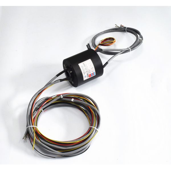 It is Ethernet slip ring with through bore size 25.4mm,for amusement equipment ,with CAT 5e cable, transmit 1000M and 100M Ethernet together.